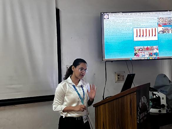 Ms. Naina Das, 2024 batch student of Malla Reddy Medical College for Women, actively participated in the scientific session and presented a case titled “The Impact of First Aid and CPR Training on Emergency Response in Readiness in Community Level.”