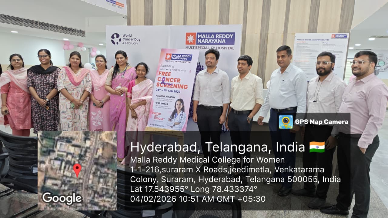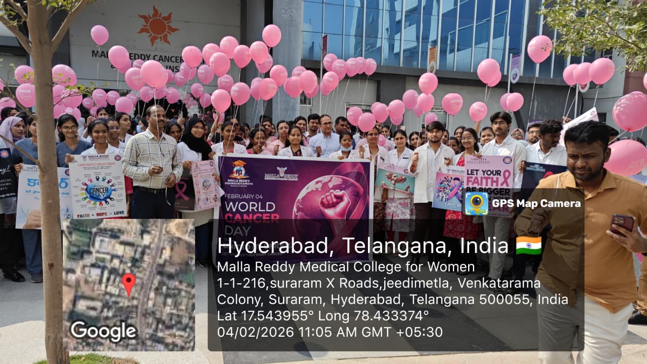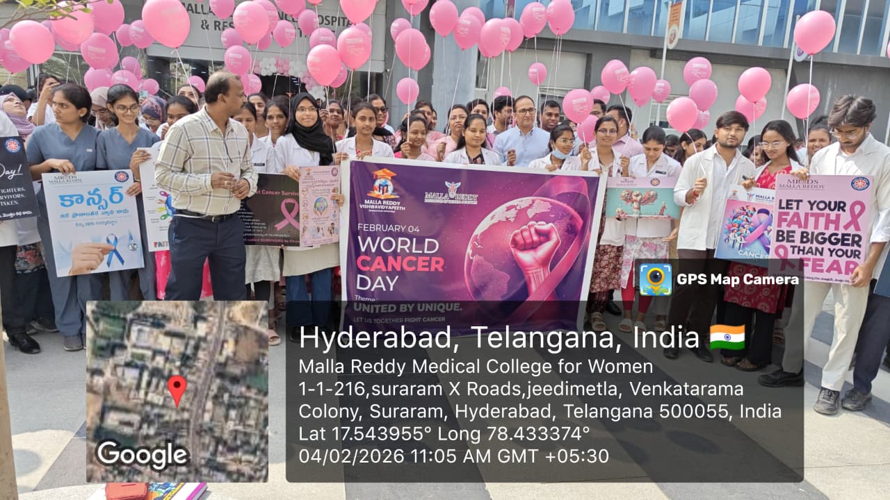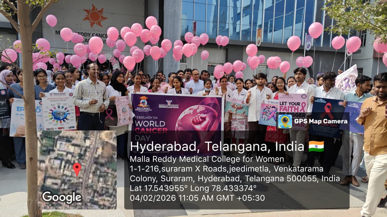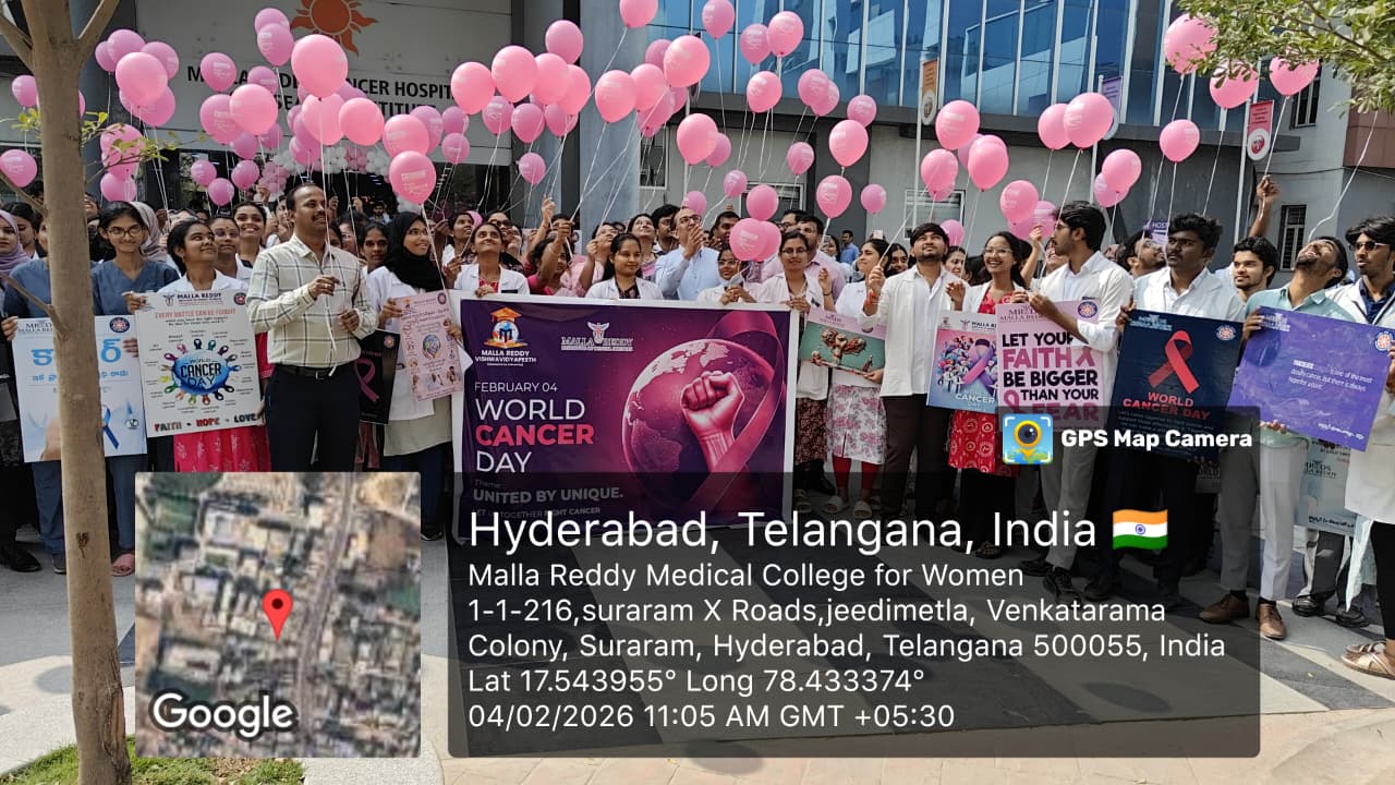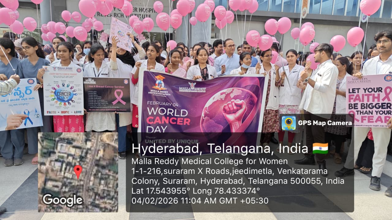 World Cancer Day was observed on 04.02.2026 by Malla Reddy Cancer Hospital with the aim of raising awareness about cancer prevention, early detection, and the importance of timely treatment. The program emphasized community education, patient support.